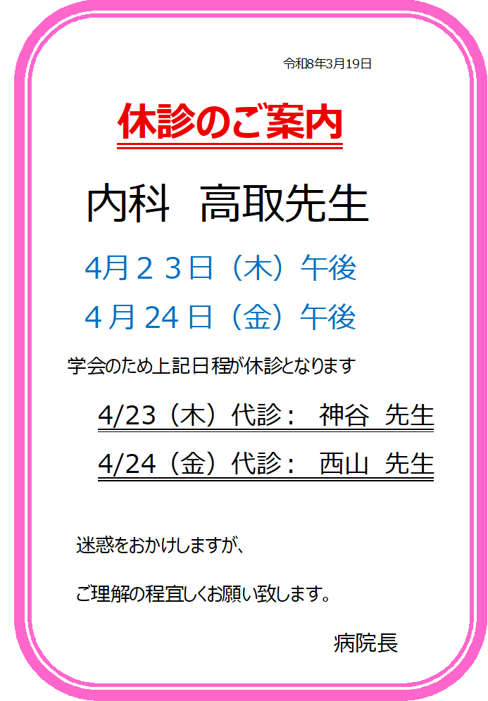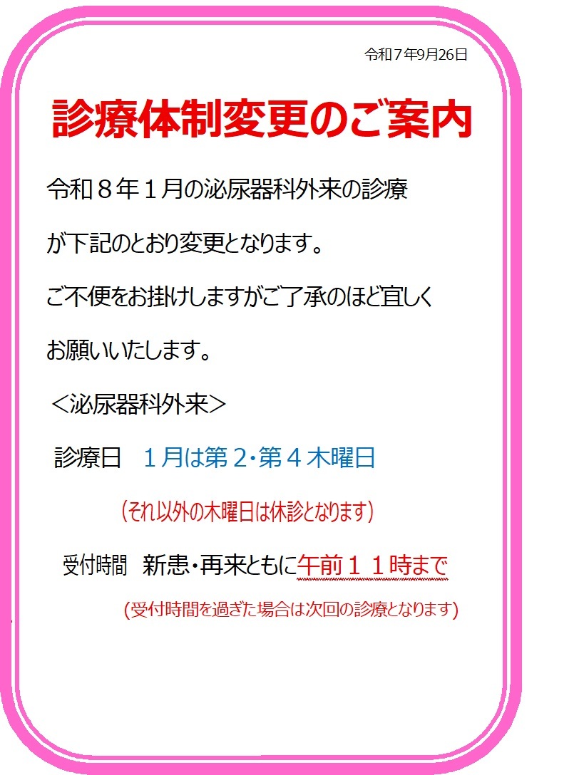 令和7年10月より第1・第3木曜日のみの診療となります。