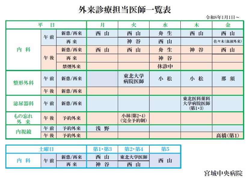 【 内科 月 ~ 土 】 【 整形(午前のみ) 火 ~ 金 】 【 泌尿器 木曜 (午前中) 】 【 物忘れ外来 火曜 (午後のみ)】