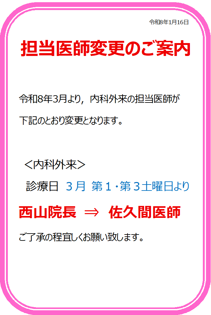 〇 水曜日午前、午後 新たに大西先生が新患担当として着任されます。