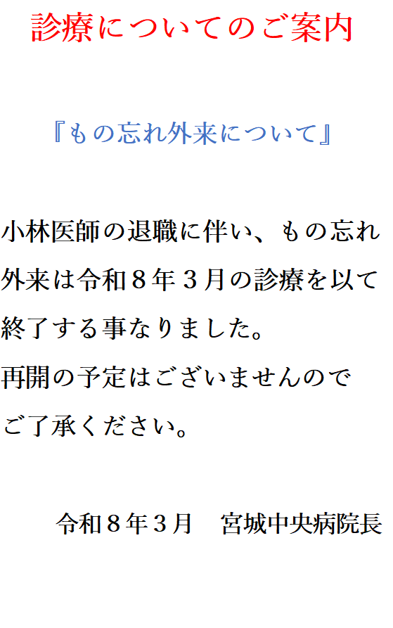 医療法人光成会宮城中央病院のホームページをおとずれていただき有難うございます。
