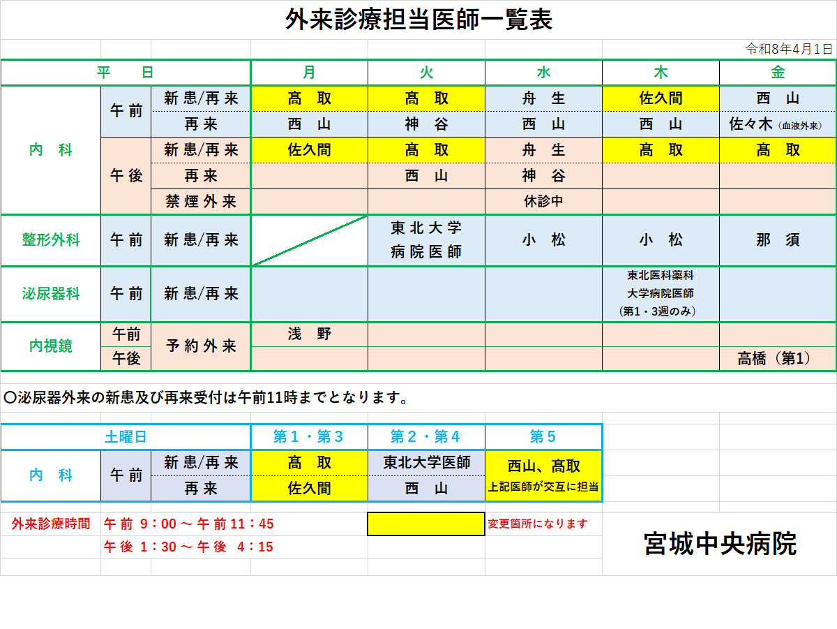 2026年4月より、外来診療担当医師が変更となります。